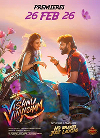 Vishnu VinyasammSamir Shukla2026-02-25T13:31:53-05:00 Vishnu VinyasammShowtimes: Get showtimes at Fandango Release Date: 26th February 2026 Language: Telugu Genre: Comedy | Romance Other Info: Directed by – Yadunaath Maruthi Rao Cast – Sree Vishnu and Nayana Sarika RETURN TO FILM GUIDE